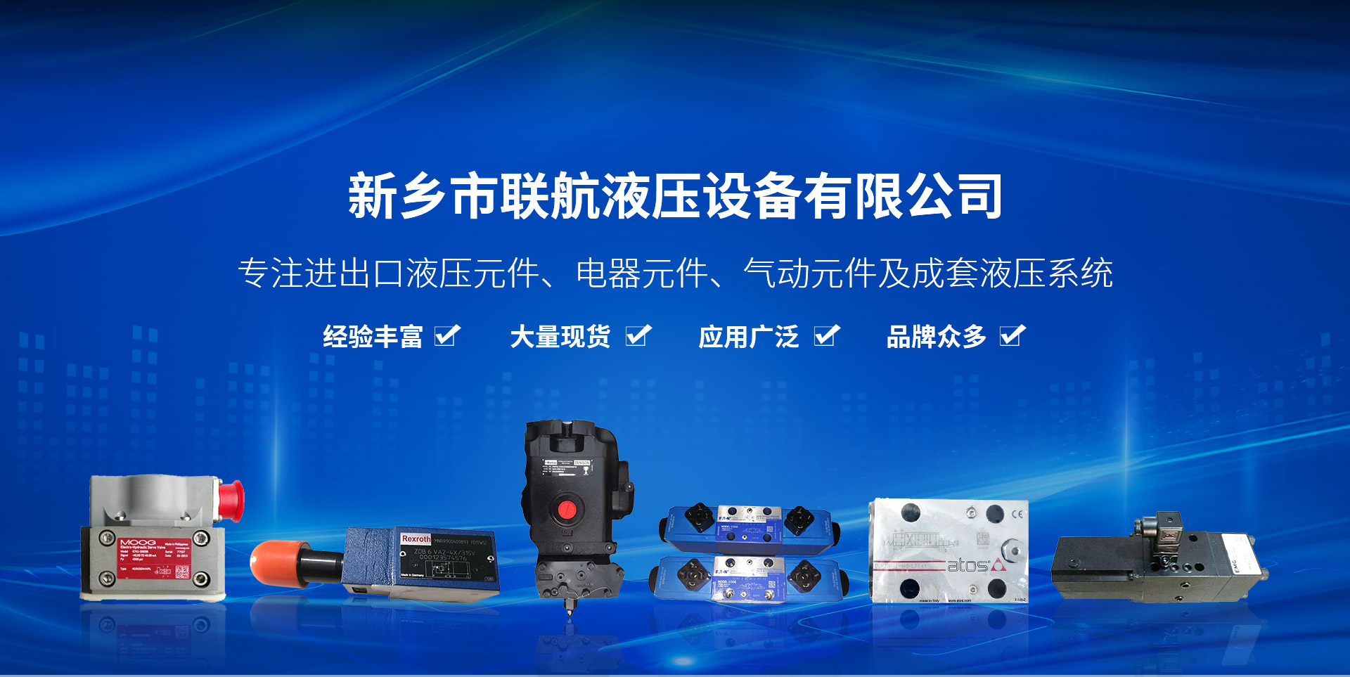 我公司是一家從事進出口液壓元件,電器元件,氣動元件及成套液壓系統選型、設計、售后與技術支持的一家技術服務企業,我們有技術人員和銷售團隊,先進的檢查設備,對電液比例閥、電液伺服閥售后及系統調試都有豐富的經驗,公司從事液壓技術行業多年,產品涉及航天、船舶、汽車、冶金、電力、礦山、石油、水泥,造紙,注塑,人造板,工業制造,勘探等部門,為了縮短產品供貨期,公司備有大量現貨,2015年成立至今,公司秉承“ 誠信,創新,共贏‘’的發展理念礪礪前行。  經營理念: 以人為本,科技創新,和諧發展!  價值觀念: 追求價值是我們工作的起點、創造價值是我們人生的動力、實現價值是我們追求!  企業文化:  誠信,務實,創新!  經營品牌:力士樂Rexroth 、穆格MOOG、 派克Parker、 伊頓威格士EATON(VICKERS)、 阿托斯ATOS、 丹尼遜DENISON、哈威HAWE、北美North Amerrican、易安基EMG、 賀德克HYDAC、 福伊特VOITH、丹佛斯DANFOSS、勝凡SUNFAB、 馬祖奇MARZOCCHI、 奧蓋爾OILGEAR、 油研YUKEN、施耐德Schneider、 川崎KPM、 威納WOERNER、布赫BUCHER、林德LINDE、萬福樂Wandfluh、不二越NACHI、 明星star、迪普馬DUPLOMATIC、羅茨RONZIO、馬勒MAHLE、頗爾PALL、翡翠MP-FILTER、雅歌輝托斯ARGO-HYTOS、太陽SUN、阿隆ARON、諾冠NORGERN、海德福HYDFORCE、609所、704所、航天18所、303所,441廠、費斯托FESTO、亞德客AirTAC、韓華HANWHA 史弗特SEFORT、海德漢HEIDENHAIN、 亨士樂Hengstler 、貝加萊B&R、 西門子SIEMENS、西克SICK 、圖爾克TURCK 、易福門IFM、皮爾茲PILZ、歐姆龍OMRON、Samek、SMC、ABB、MPM、E+H、 MTS